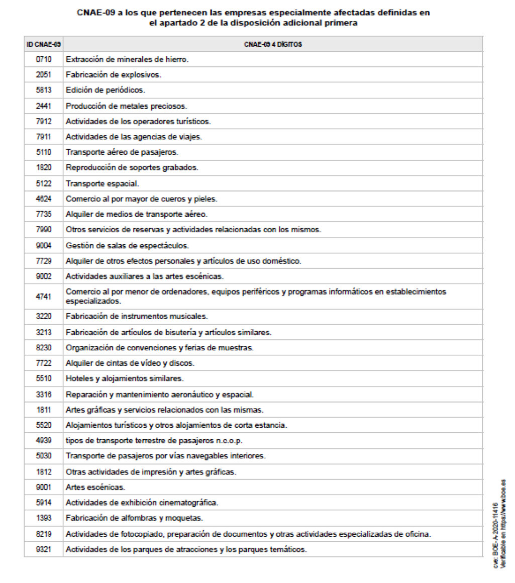 Únicamente habrá exoneraciones de cuotas de Seguridad Social para aquellas empresas pertenecientes a determinados CNAE y a los sectores o integrantes de la cadena de valor de los CNAE que se indican en el ANEXO I. CNAE-09 a los que pertenecen las empresas especialmente afectadas definidas en el apartado 2 de la D.A.1º.